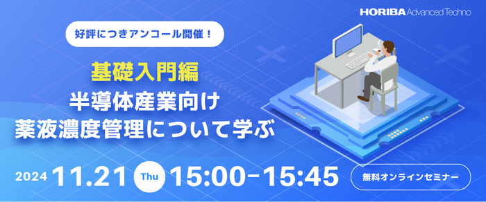半導体プロセス管理に欠かせない薬液濃度管理について、基本的な内容を30分で徹底解説いたします。薬液濃度モニタの選定等で悩んでいる方にもおすすめのセミナーです。