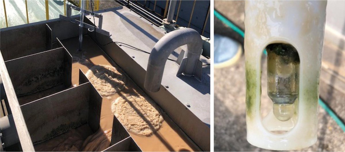 ある繊維工場の返送汚泥槽では、汚泥がpH電極に多く付着し、指示ずれ・感度低下が著しいため、連続測定が不可能でした。そのためpH監視は毎日のバッチ測定を実施され、多大な作業工数がかかっていました。
