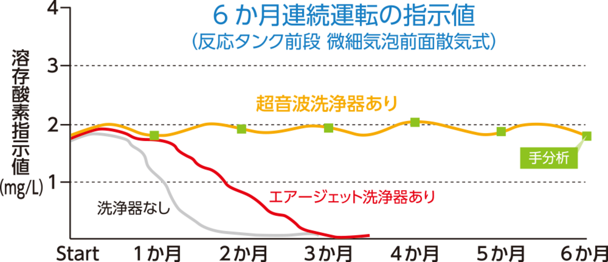 超音波洗浄器により6か月メンテナンスフリーでも汚れによる影響は見られないことを確認。