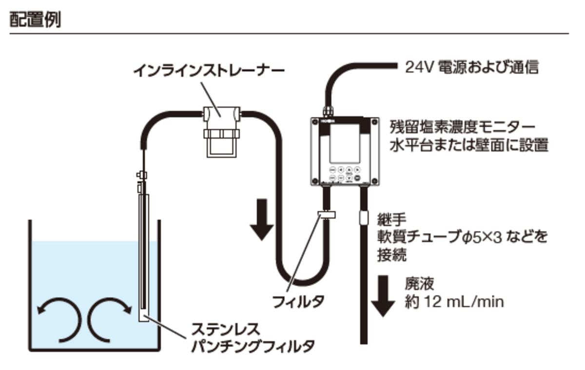 設置の際、洗浄槽から本装置までの距離が長いと測定値の表示が遅くなります。