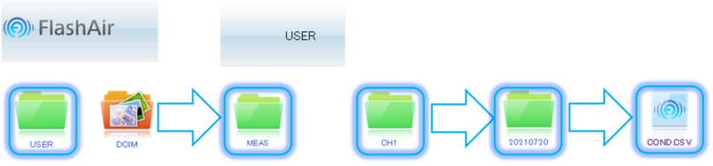 USERフォルダ → MEASフォルダ → データを取得したいCHフォルダ → 日付のフォルダ → 測定項目フォルダ