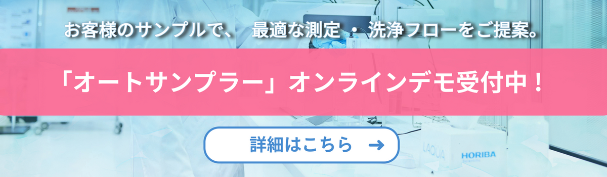 オートサンプラーの導入をご検討中の方に、無償オンラインデモを実施しています。オンラインデモではお客様が普段測定されているサンプルをお預かりして測定を行ない、最適な測定・洗浄条件やフローをご提案します。お気軽にお申込みください。