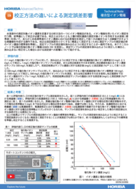以上の結果から、サンプルの測定値近傍のイオン濃度の標準液を準備し、サンプルの測定値を挟み込むように校正することで測定誤差が小さくなる (精度良く測定できる) ことが実測定でも明らかで、約 10 倍濃度差もしくはそれ以下の標準液を準備し校正することを推奨します。
