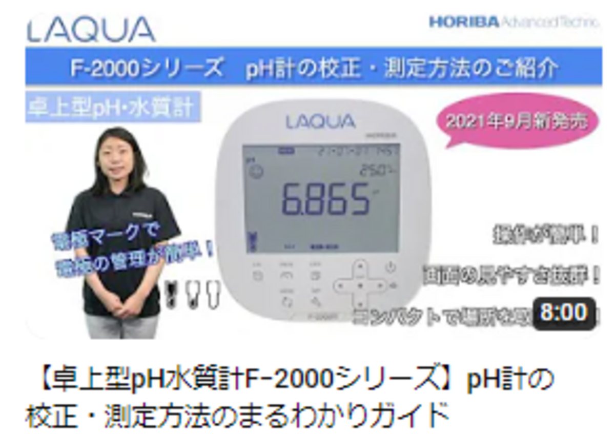 本動画では、F-2000シリーズのpH計の校正から測定方法を紹介します。