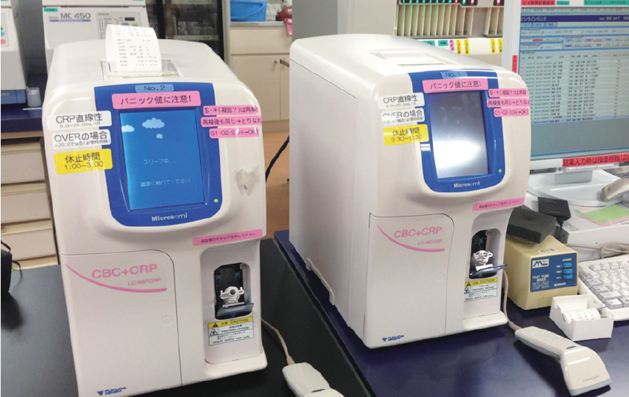 The hematology analyzer we are using for emergency patients outside the clinic hours can measure CBC and CRP with only 60 µL of whole blood. Smaller blood samples reduce the stress and pain associated with blood draws from children. This is beneficial to both the patients and the nursing staff.