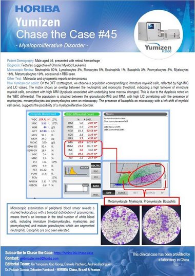 This month's clinical case comes from China: 46-year-old man who's hematology test results, performed by HORIBA Yumizen H2500, suggest a possible myeloproliferative disorder.